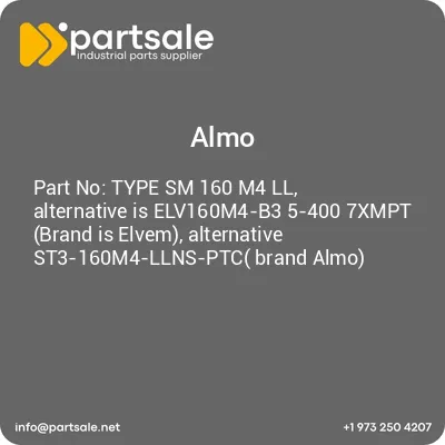 Please click for detailed information about the TYPE SM 160 M4 LL, alternative is ELV160M4-B3 5-400 7XMPT (Brand is Elvem), alternative ST3-160M4-LLNS-PTC( brand Almo).