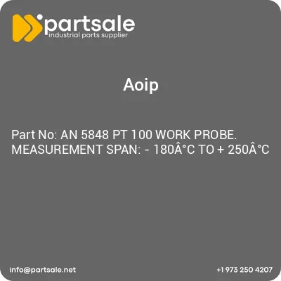 Please click for detailed information about the AN 5848 PT 100 WORK PROBE. MEASUREMENT SPAN: - 180°C TO + 250°C.